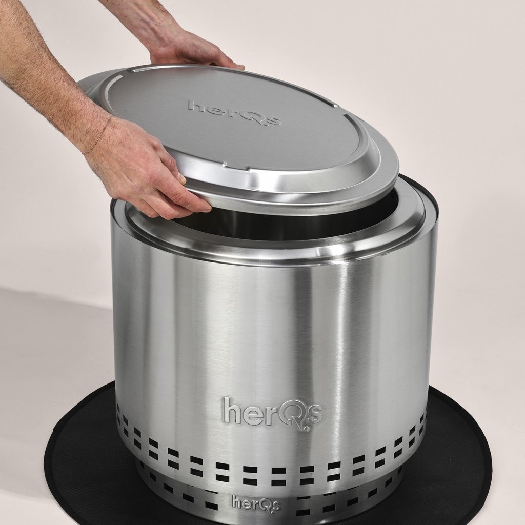 The herQs Closer giver dig en enkel og pålidelig måde at afslutte dit bål med ro i sindet. Når aftenen går på hæld, lægger du låget over dit ildsted for at hjælpe med at holde gnister inde, dæmpe gløderne og efterlade udeområdet pænt og under kontrol.