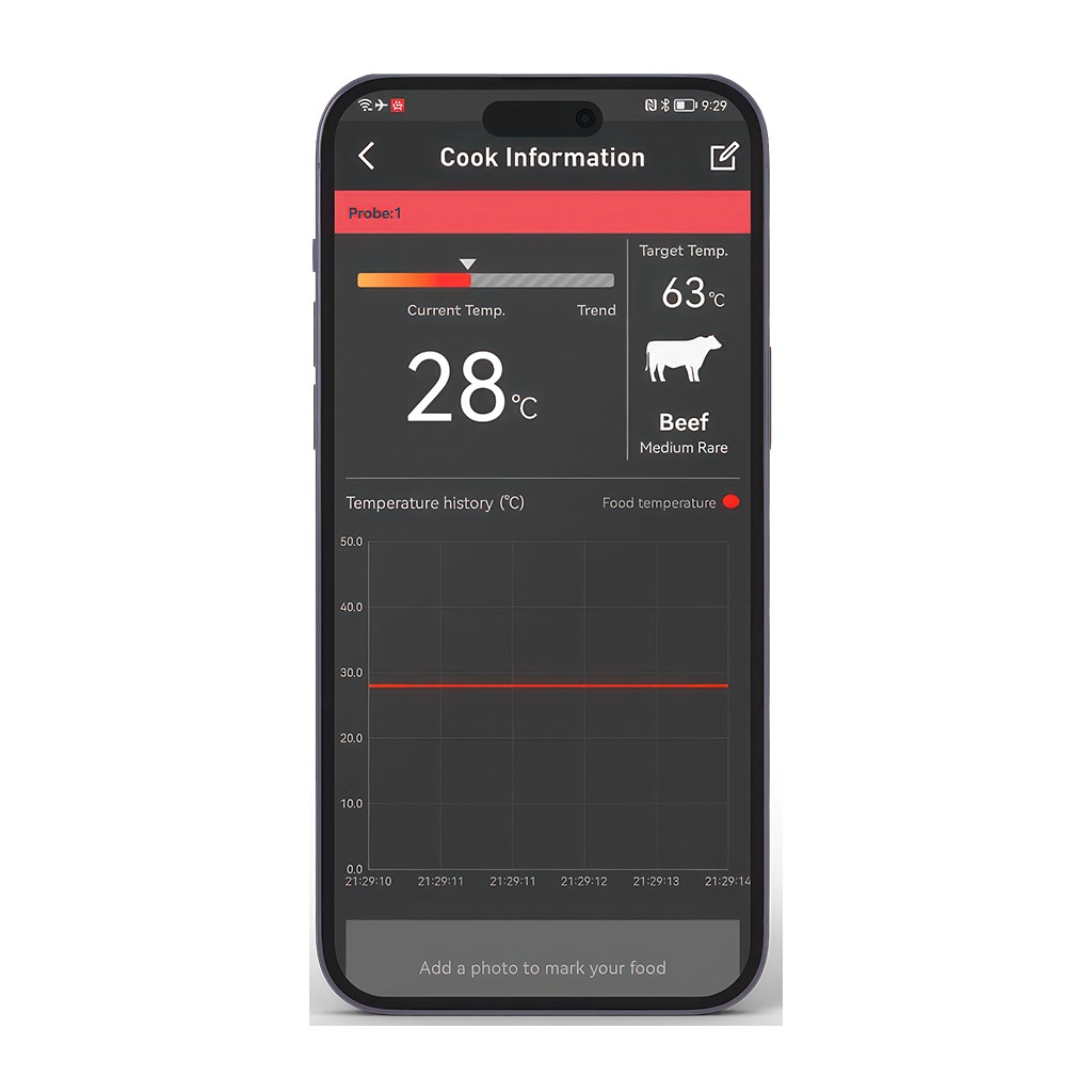 Hold dig informeret med advarsler i realtid direkte til din smartphone ved hjælp af HerQs EasyBBQ-appen. Det er slut med at svæve rundt om grillen! Med disse meddelelser ved du præcis, hvornår din mad har nået den ønskede temperatur, hvilket giver dig frihed til at være den perfekte vært, mens du stadig tager roret ved grillen.