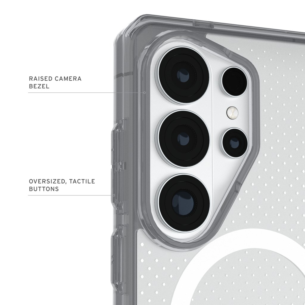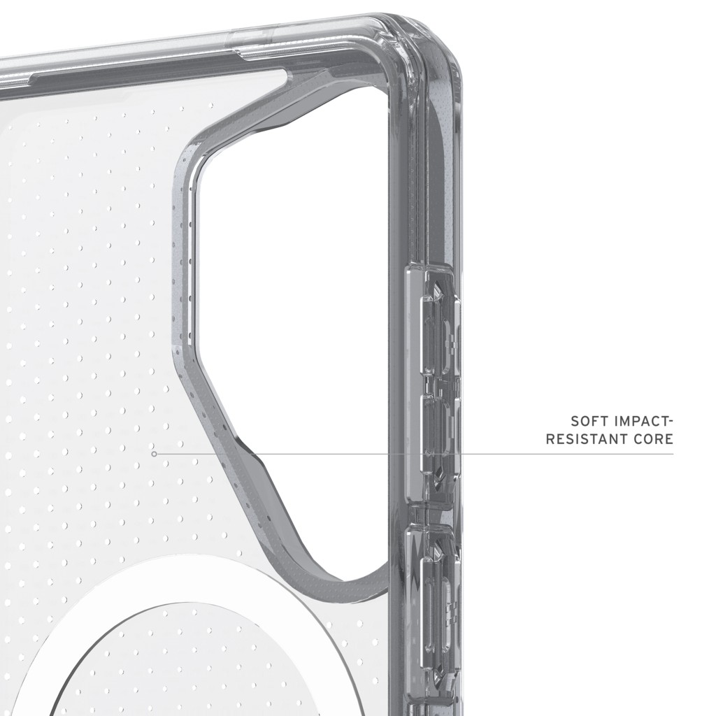Urban Armor Gear Samsung S26 Ultra Dot Mobile Case with Magnetic Mount and True Clear Protection i Ice/Ash er et let, gennemsigtigt cover, der er bygget til tryghed i hverdagen. Det kombinerer et klart, robust design med stærk faldsikring, en sikker magnetmontering til opladning og tilbehør samt en gribende overflade, der hjælper dig med at holde fast i din telefon.