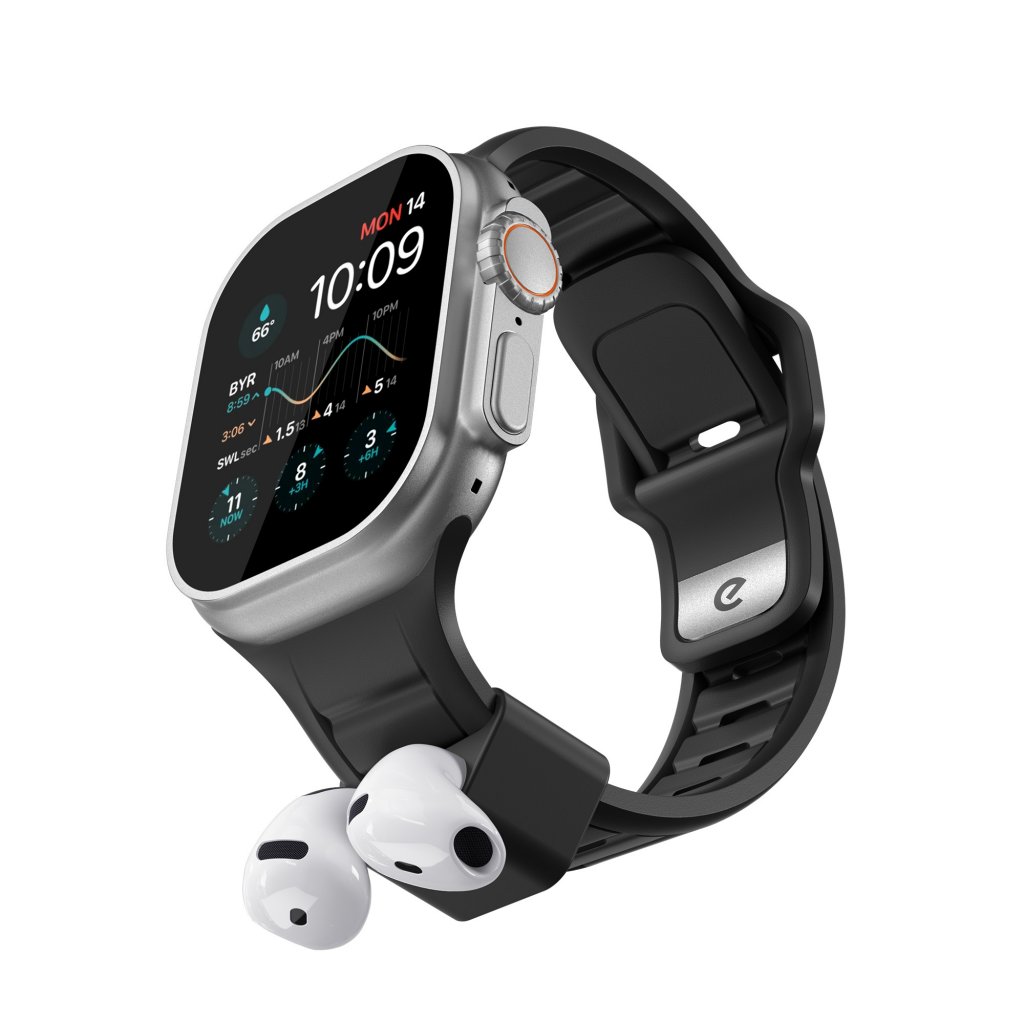 KeyBudz Sync+ Series is a premium FKM watch strap for Apple Watch (44–49mm) with a built-in, removable AirPods dock. It’s designed for daily wear and demanding conditions, giving you a secure, easy-to-reach place for your AirPods without adding bulk or getting in the way.