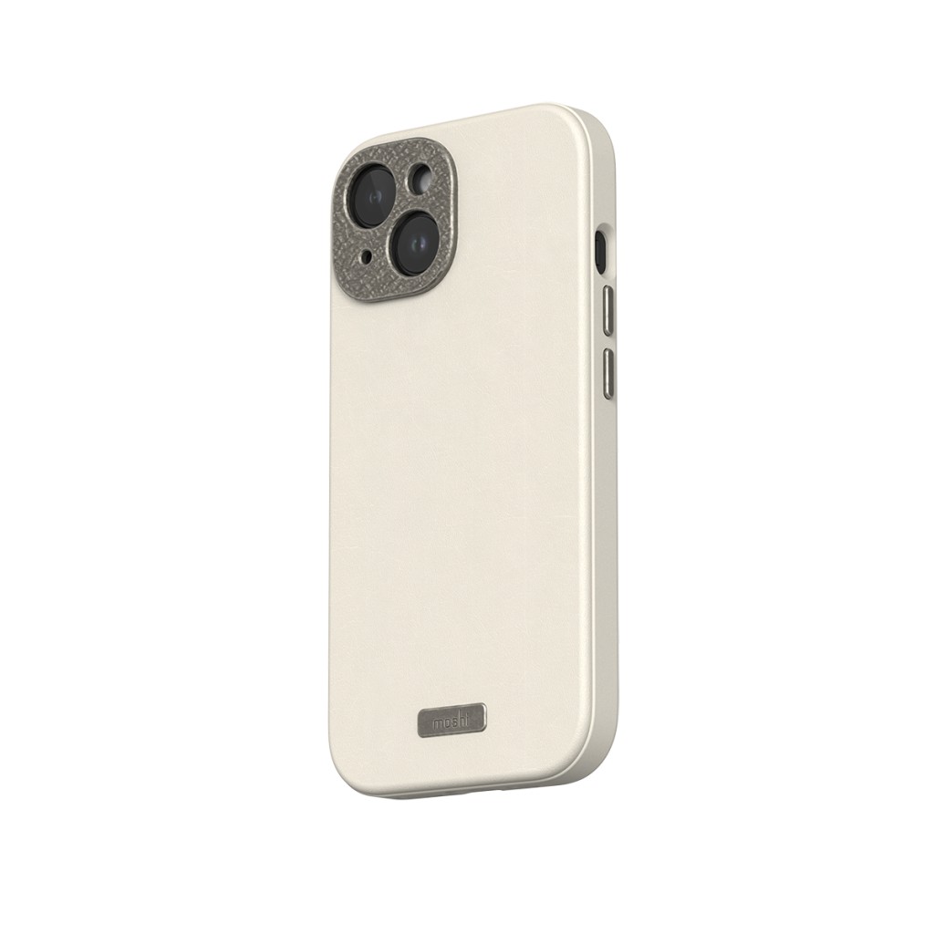 Emphasize your distinctive personal style with the subtle elegance of Moshi's Napa for iPhone 15 in Eggnog White. Crafted from eco-friendly vegan leather with special patterned metal accents, this unique phone case delivers superior protection and luxury in one versatile package. It is a definitive choice for those who want an exquisite mixture of vintage charm and contemporary precision.