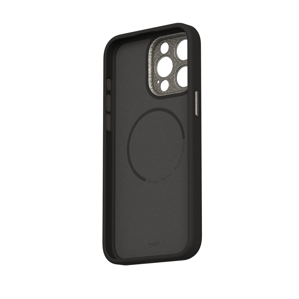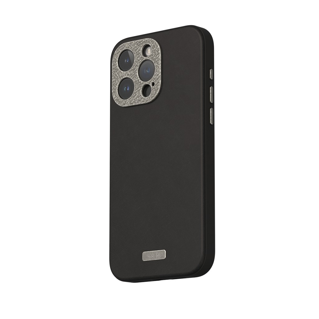 Emphasize your distinctive personal style with the subtle elegance of Moshi's Napa for iPhone 15 Pro Max in Midnight Black. Crafted from eco-friendly vegan leather with special patterned metal accents, this unique phone case delivers superior protection and luxury in one versatile package. It is a definitive choice for those who want an exquisite mixture of vintage charm and contemporary precision.