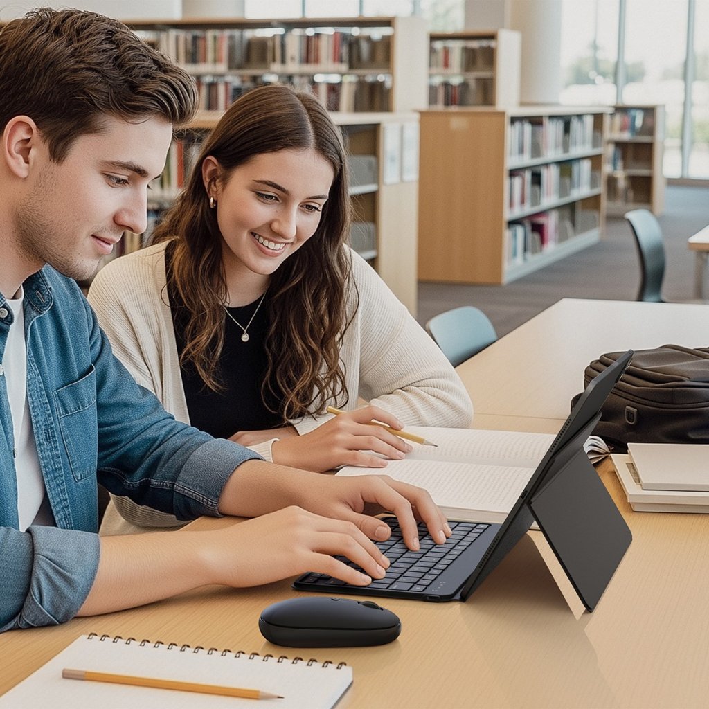 Scissor-switch keys provide precise, low-noise response. Perfect for libraries, cafes or open-plan offices where you want to focus without distraction.