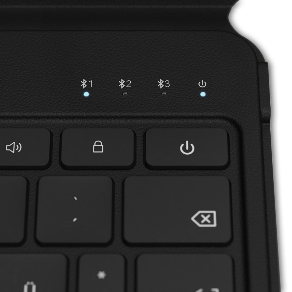 The keyboard's protective cover transforms into a stable stand for your device - whether you prefer portrait or landscape mode. The angle can be adjusted up to 150° for optimal comfort during video calls, work or movie sessions.