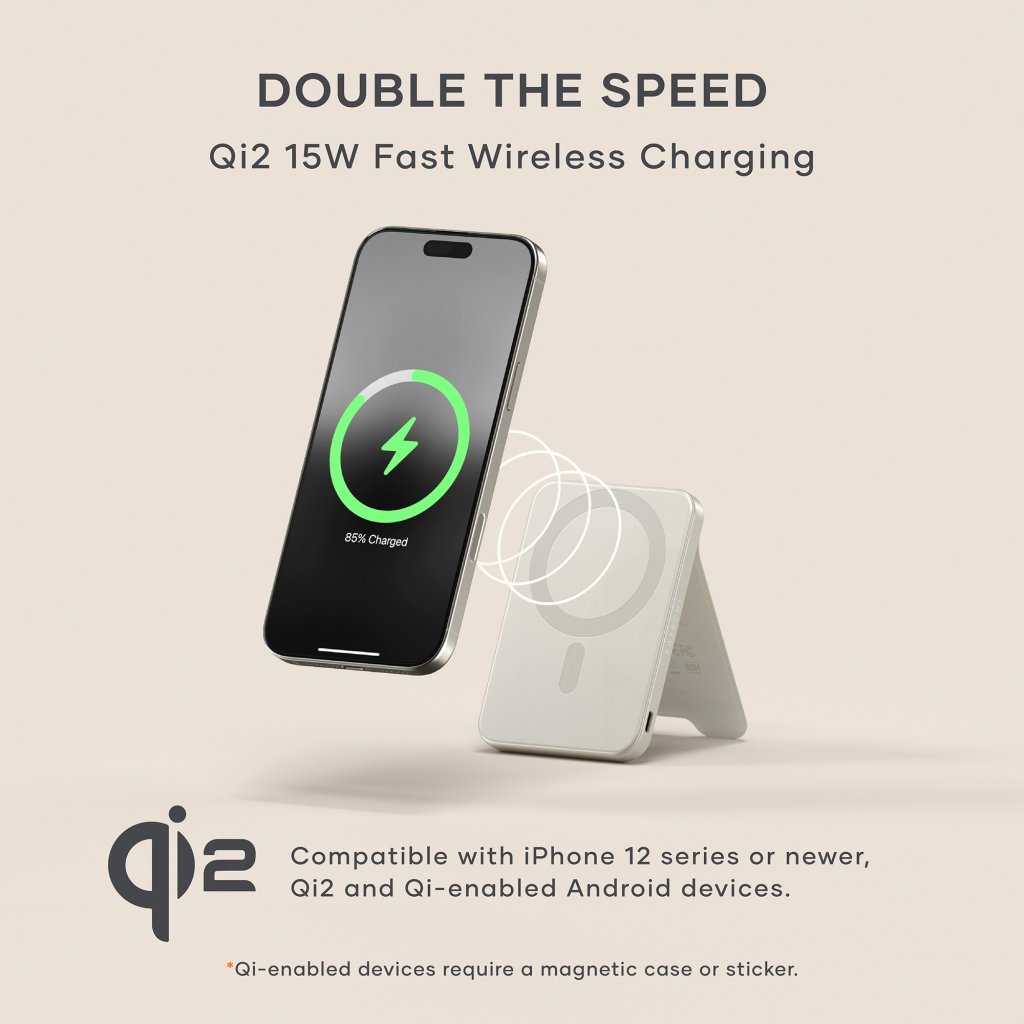 - Satechi OntheGo™ Qi2 5K Magnetic Power Bank with Stand - Sand