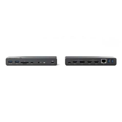 • Lähtöportit: 3 HDMI (1 x 2.0, 2 x 1.4b), 1 DisplayPort (DP1.4), 1 USB-C 3.2 Gen 1 (5 Gbps), 2 USB-A 3.2 Gen 1 (5 Gbps), 2 USB-A 2.0, 1 3,5 mm:n yhdistelmäaudio-/mikrofoniliitäntä, 1 RJ45 Ethernet (1 Gbps), 1 SD-kortinlukija (SD 2.5), 1 Micro-SD-kortinlukija (SD 2.5)