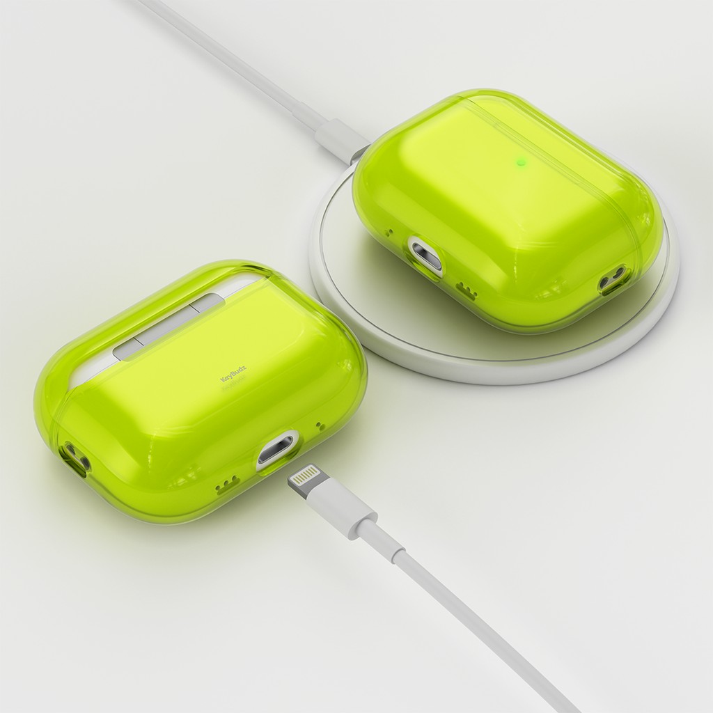 • 1 x KeyBudz Jelly Series -läpinäkyvä kotelo AirPods Pro 3rd Gen:lle - Neonkeltainen