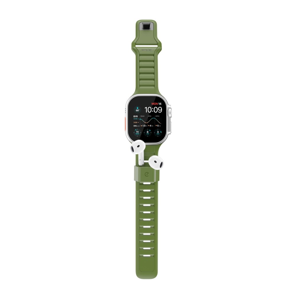 Sync+ integroi AirPods-telakan suoraan rannekkeeseen, jotta AirPodeillasi on aina oma, helposti tavoitettava paikka. Se vähentää taskujen kanssa säätämistä ja pudottamisriskiä, ja pitää tärkeimmät mukanasi liikkeessä, matkalla ja ulkoillessa.