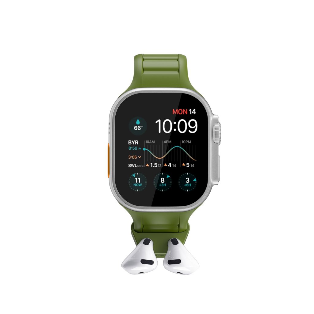 KeyBudz Sync+ Series on ensiluokkainen FKM-ranneke Apple Watchille (44–49 mm), ja siinä on sisäänrakennettu, irrotettava AirPods-telakka. Se on suunniteltu päivittäiseen käyttöön ja vaativiin olosuhteisiin, ja tarjoaa AirPodeillesi varman, helposti tavoitettavan paikan lisäämättä paksuutta tai häiritsemättä käyttöä.