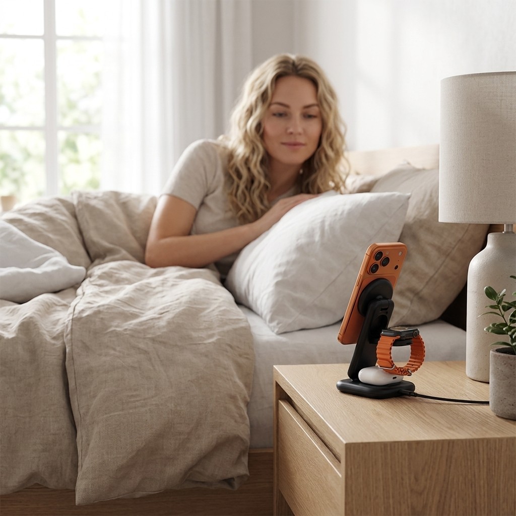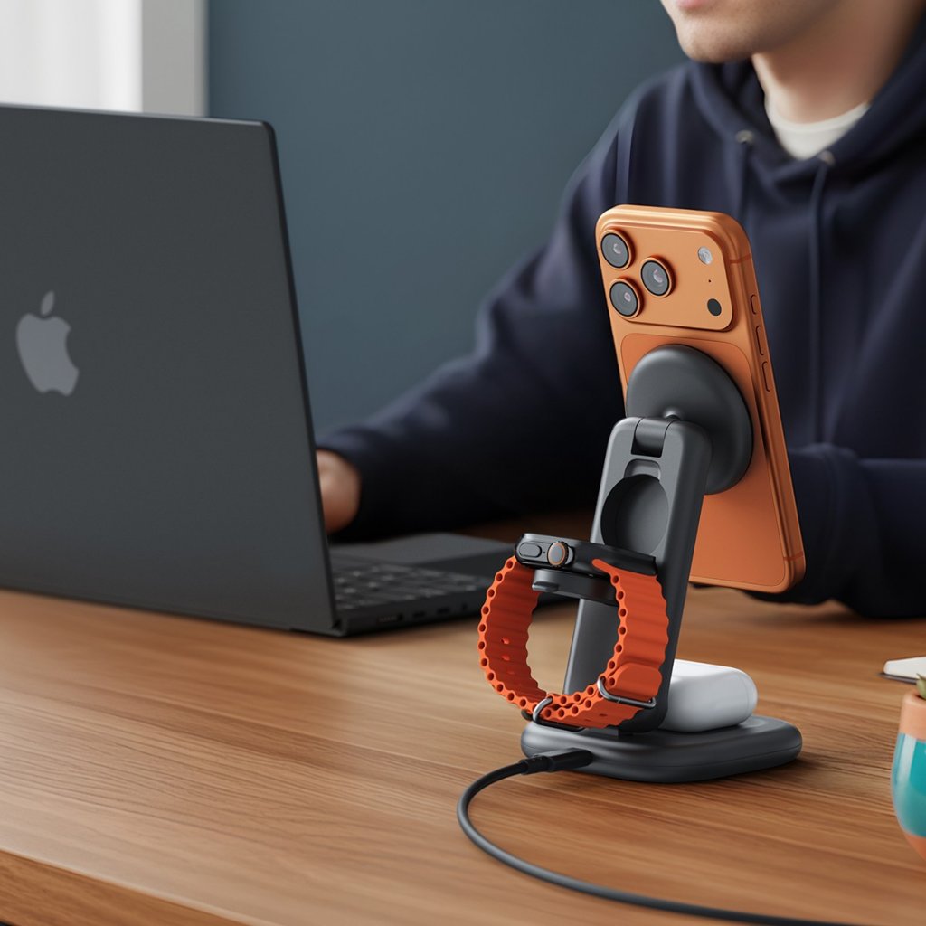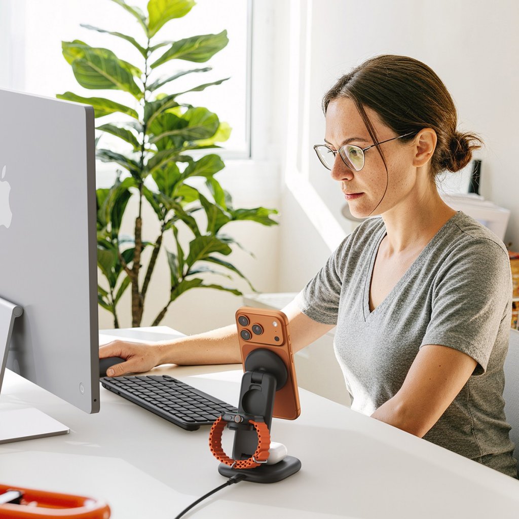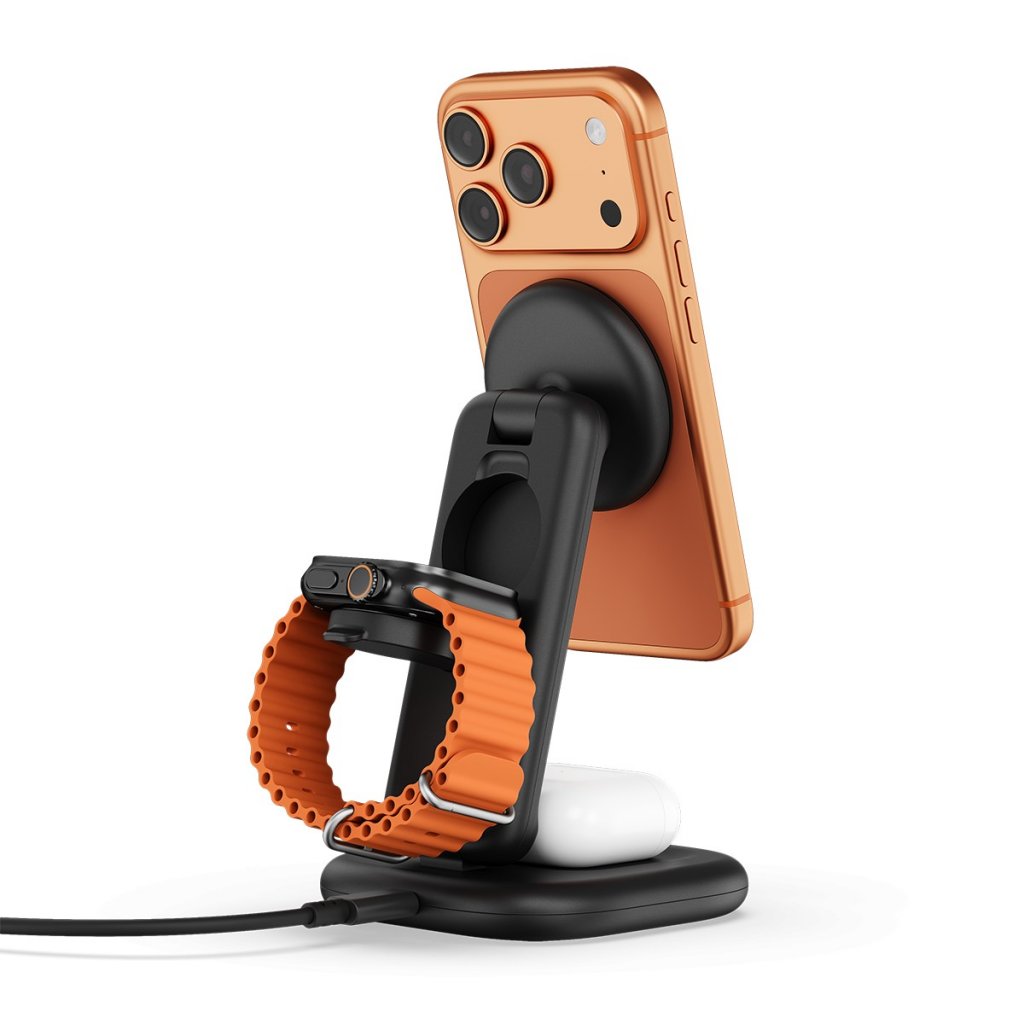 Yksi teline lataa kolmea laitetta samanaikaisesti, joten erillisiä pöytää tai yöpöytää täyttäviä latureita ei tarvita. iPhone-latausalusta tarjoaa jopa 25 W, kun taas Apple Watchin ja nappikuulokkeiden latausalustat tarjoavat kumpikin jopa 5 W. Apple Watchin pikalatausta tuetaan malleissa Apple Watch Series 7–11, Apple Watch SE 3 ja Apple Watch Ultra Gen 1–3.