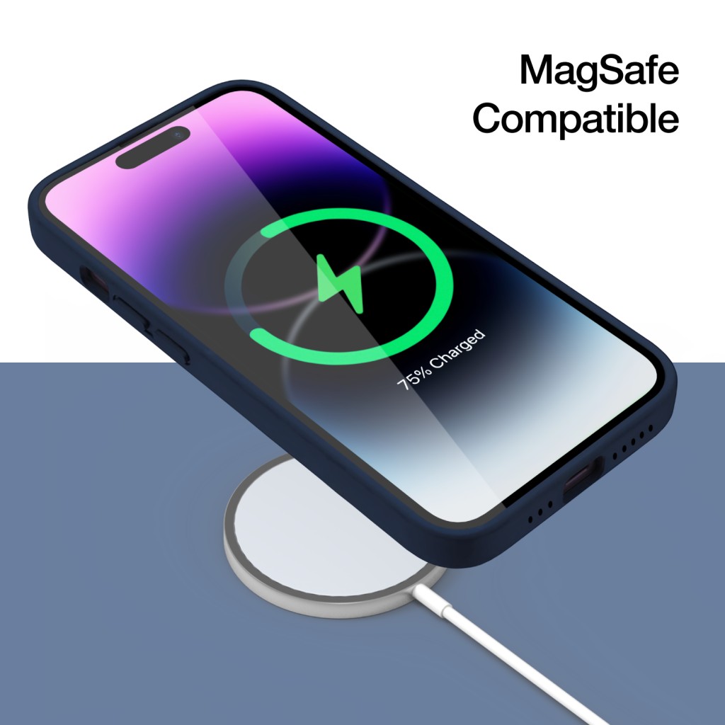 Använd MagSafe-laddare och tillbehör med tillförsikt. Fodralet är helt kompatibelt med MagSafe och stöder annan trådlös Qi-laddning, så att du kan ladda och komplettera utan att ta av dig det.