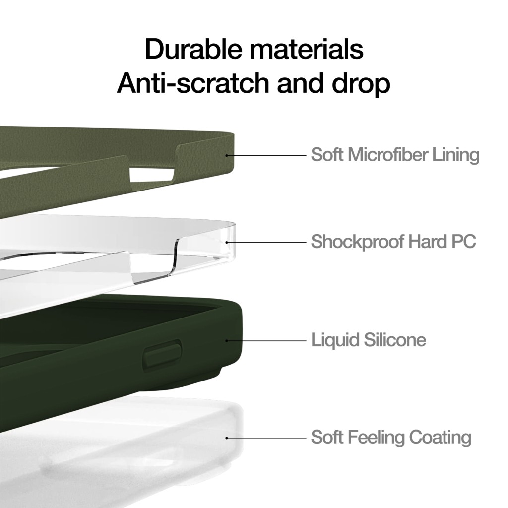 Inuti finns ett mjukt mikrofiberfoder som dämpar din telefon, följt av ett skyddande hårt PCP-skal för struktur, sedan supermjuk silikon för stötdämpning, allt toppat med en fastare, greppvänlig silikonyta. Tillsammans ger dessa fyra lager bekväm hantering och pålitligt stötskydd.