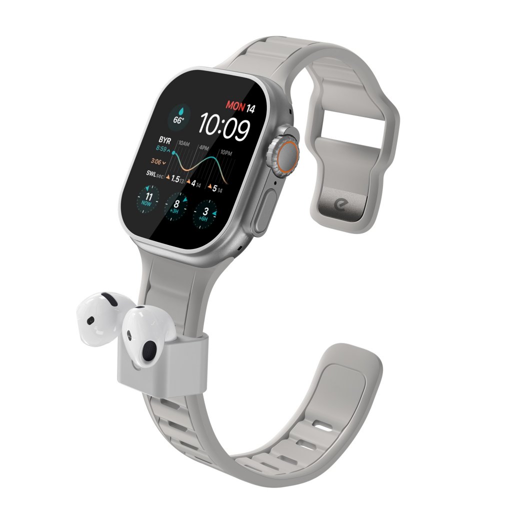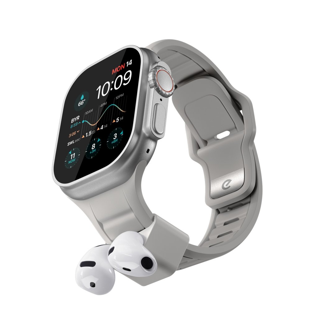 Dockan använder ett premium mjukberöringssilicon som är utformat för att hålla dina AirPods säkert på plats samtidigt som det känns skönt mot huden. Tillsammans med det flexibla FKM-armbandet är systemet byggt för långvarig användning, oavsett om du är aktiv utomhus eller rör dig genom en hektisk dag.