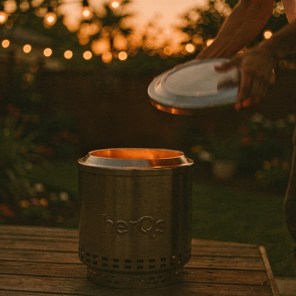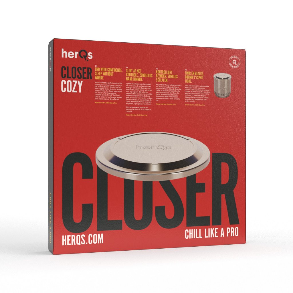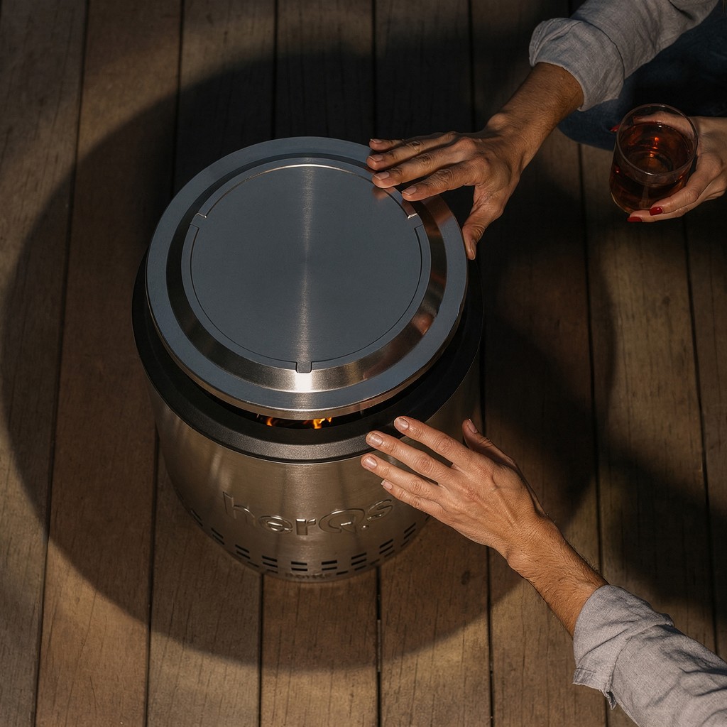 herQs Closer gir deg en enkel og pålitelig måte å avslutte bålet på med trygghet. Når kvelden går mot slutten, legger du lokket over ildstedet for å bidra til å holde gnister på plass, dempe glør og etterlate uteområdet ryddig og under kontroll.