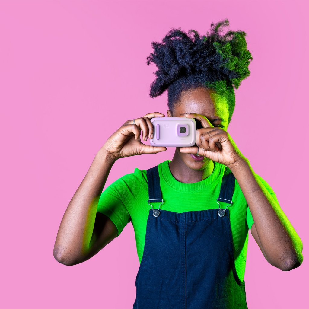 Camera 50 er laget for virkelige eventyr, og er beskyttet av et tøft, barnevennlig etui med avrundede kanter, en tykk TPU-ramme, støtdemping og ripebestandighet. En sikker håndstropp mot fall og en komfortabel halsstropp gjør det enkelt og trygt å bære, slik at barna kan ta bilder hvor som helst uten bekymringer.