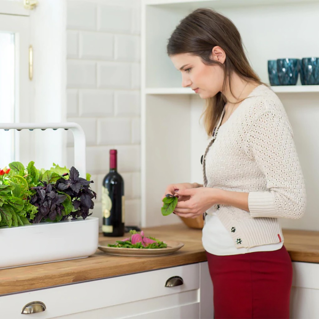 Gjør hagearbeidet til en ny opplevelse med Click and Grow Smart Garden 9 Pro Starter Kit. Denne innovative, app-styrte, selvvoksende hagen bringer gleden ved hagearbeid inn i alle hjem, uansett plassbegrensninger eller utendørsforhold. Dette hagesettet gir et optimalt miljø for planter året rundt, og gjør det enkelt for alle å dyrke friske urter, frukt og grønnsaker.