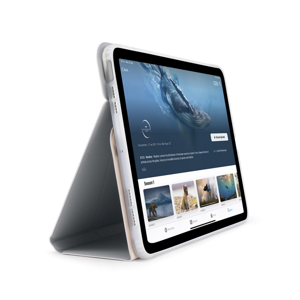 Upplev oöverträffad mångsidighet med den unika Origami-stativfunktionen. Vik enkelt upp fodralet till flera betraktningsvinklar, så att du bekvämt kan använda din iPad Air för att skriva, videosamtal eller mediekonsumtion.