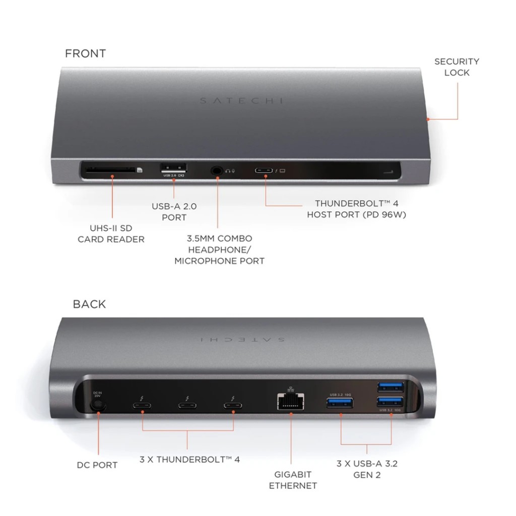 Satechi Thunderbolt 4 Dock - Snabb dataöverföring, dubbel 4K HDMI och kraftfull laddning för ultimat mångsidighet och effektivit