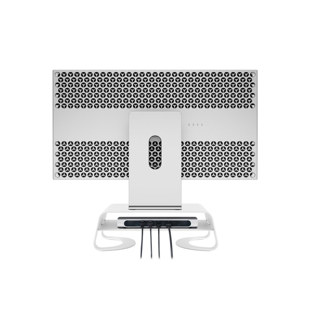 Det här stativet är mer än bara ett stöd för din bildskärm; det innehåller en inbyggd hylla som hjälper dig att hålla arbetsytan städad. Förvara hubbar, hårddiskar, personliga föremål och till och med en Mac mini under iMac eller skärmen. Genom att organisera skrivbordsutrymmet bidrar Curve Riser till en renare och mer fokuserad arbetsmiljö.