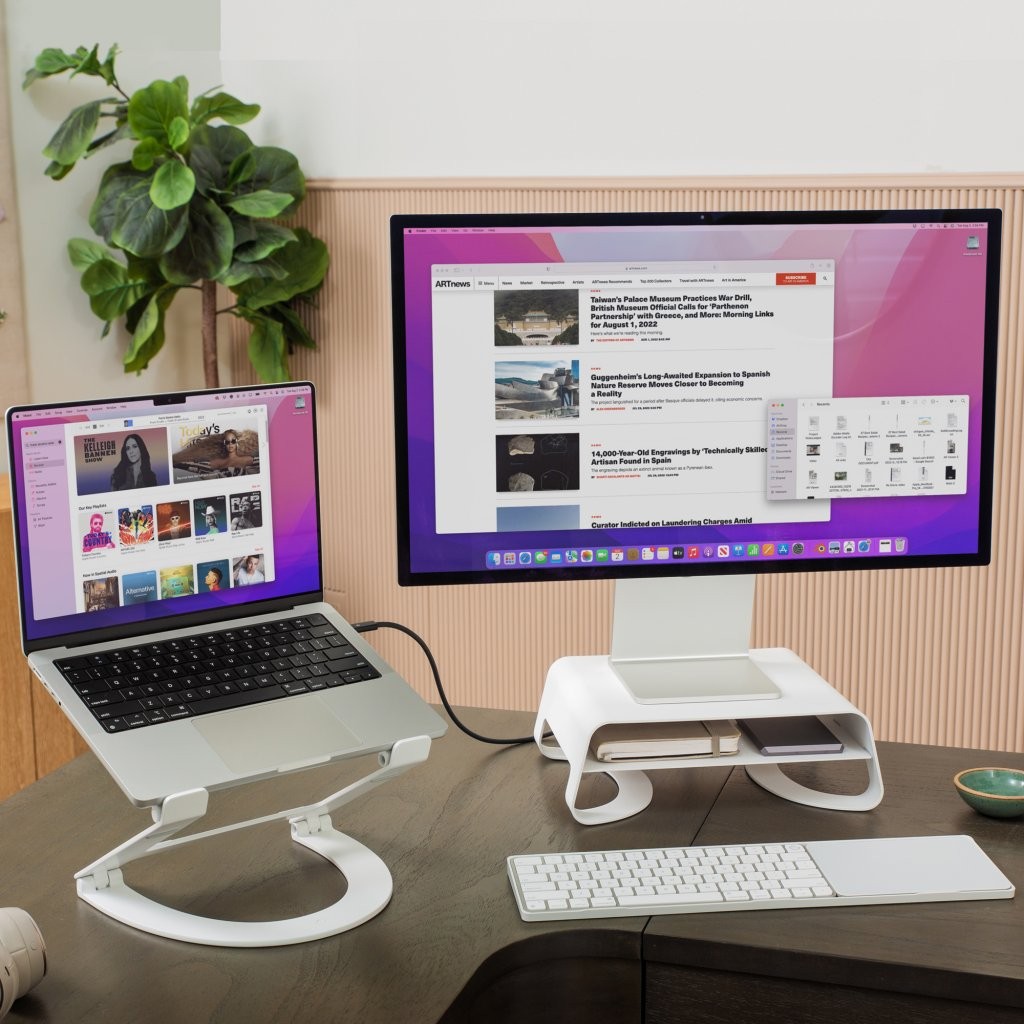 Curve Riser är utformad för att fungera perfekt tillsammans med Curve för MacBook för en elegant dubbelskärmsuppsättning. Med liknande designestetik har stativen ett sammanhängande och attraktivt utseende som lyfter dina Mac-datorer till nästan samma höjd och förbättrar den övergripande stilen på din arbetsyta.