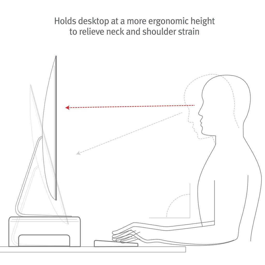 Twelve South Curve Riser höjer din iMac eller externa bildskärm till en mer nackvänlig höjd. Genom att lyfta skärmen 10,7 cm (4,25 tum) främjar den en bättre hållning och kan bidra till att minska ansträngning och obehag under långa arbetspass, vilket leder till en bekvämare och mer produktiv upplevelse.